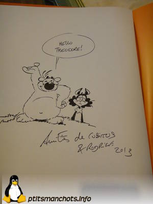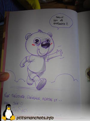 Et effectivement ! Il a passé un chouette moment et est revenu avec des dédicaces pour lui et ses soeurs (et BB5 !).
