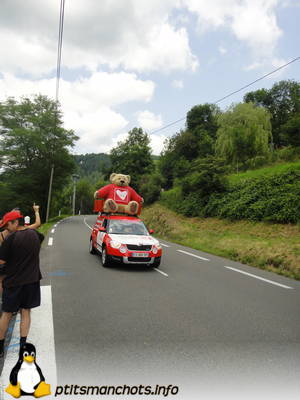 Pendant que Théodore profitait de l’animation proposée par le secours populaire (ça m’a rappelé une sortie à Paris quand j’étais petite :-)), nous, nous avons joué les fans et sommes montés sur la route pour récupérer les cadeaux publicitaires.