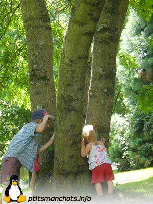 Le jeu, c’était de faire les lapins crétins en criant entre les troncs, tous en même temps !